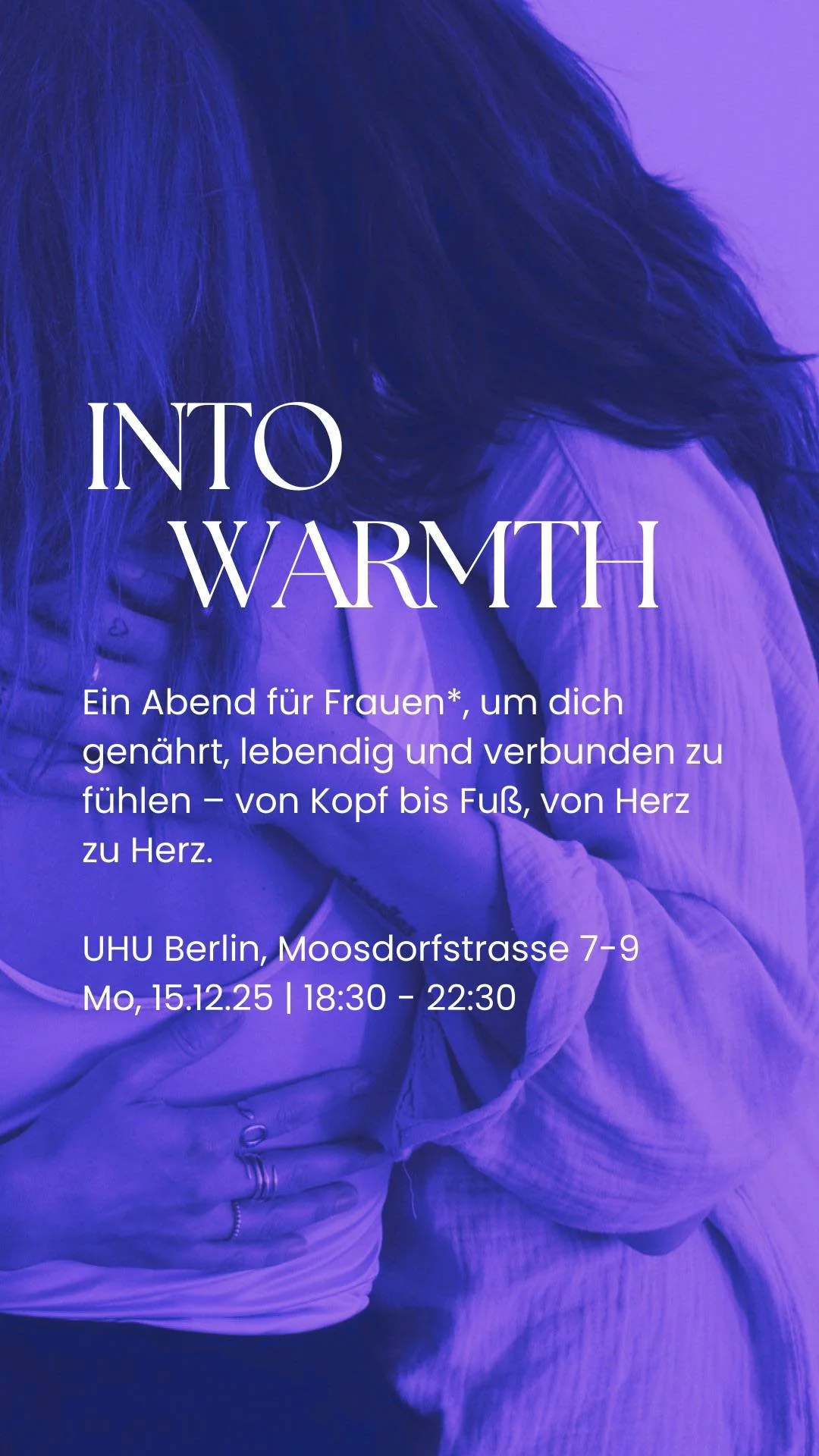 Mit Into Warmth laden wir dich ein zu einem Abend in Verbindung – mit dir selbst, deinem Körper und anderen Frauen*.